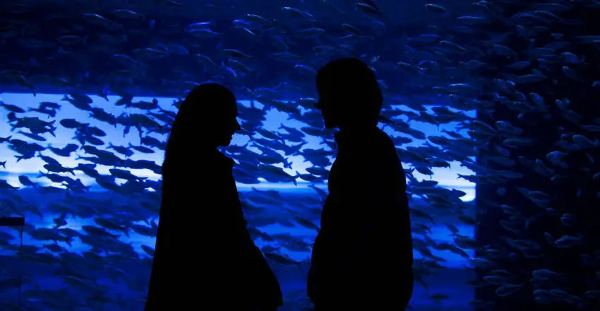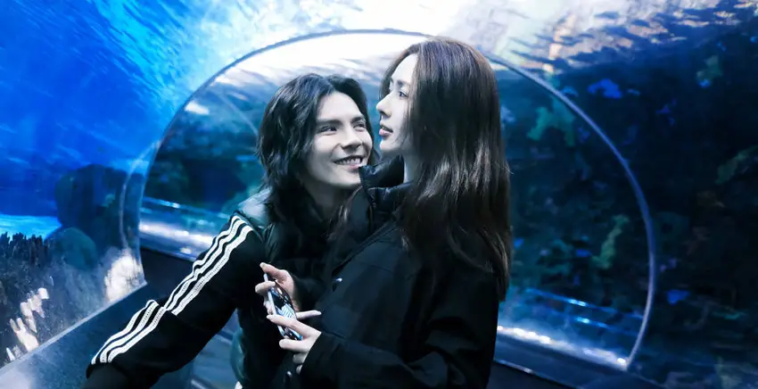 Zuo Guo Biting went to the aquarium and snuggled up to each other, looking at each other affectionately and full of love