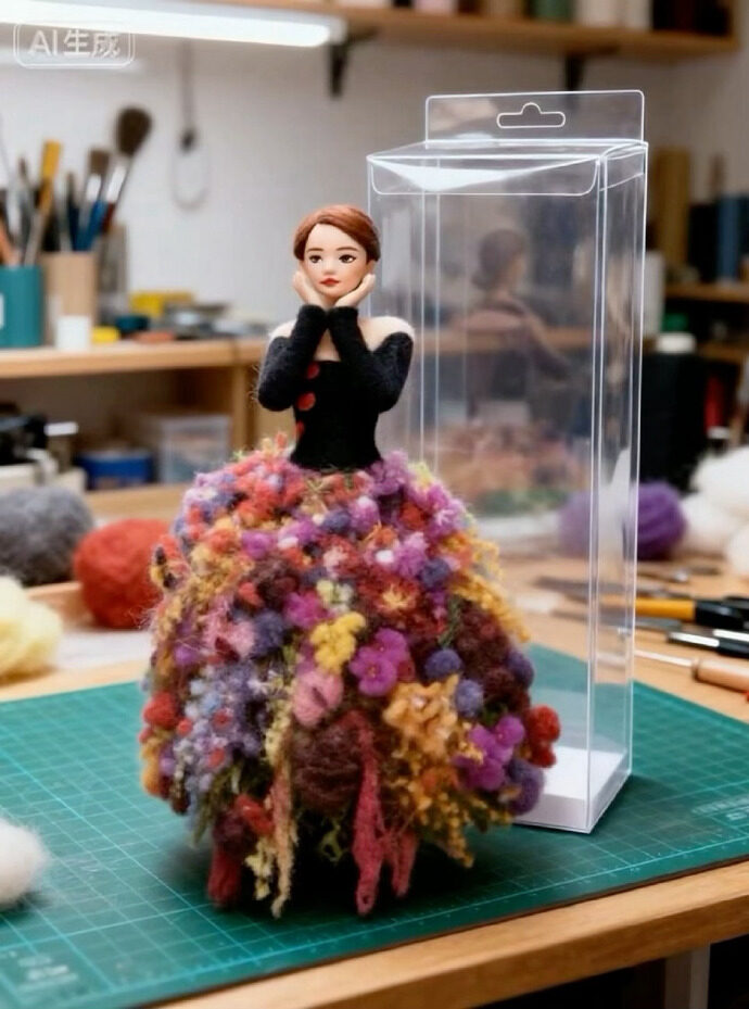 Qi Wei is surrounded by a group of flowers, bright and bright, holding a blue feather in her hand, and her expression is lively