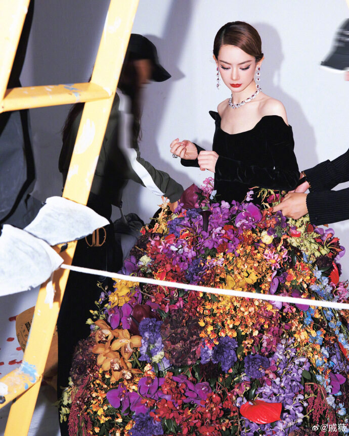 On October 23, a set of tidbits of Qi Wei's departure ceremony were released. She was bright and conspicuous surrounded by flowers.