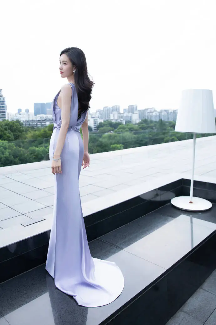Chen Turin wore a purple v-neck fishtail dress with a bright smile, temperament and intellectual generosity.