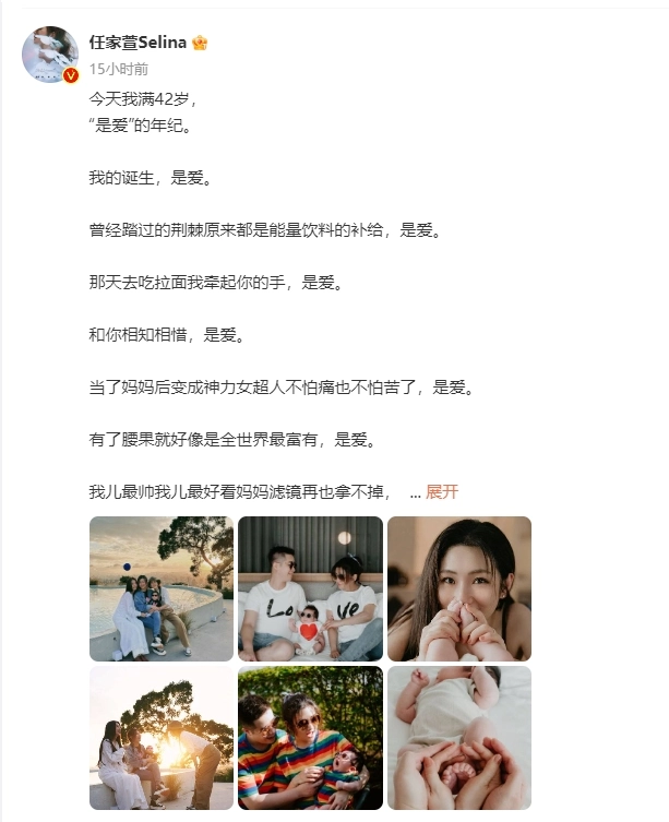 On the evening of October 31st, Ren Jiaxuan Selina posted a post to celebrate her 42nd birthday, posting a front photo of her son and a family of three, sweetly confessing: "w...