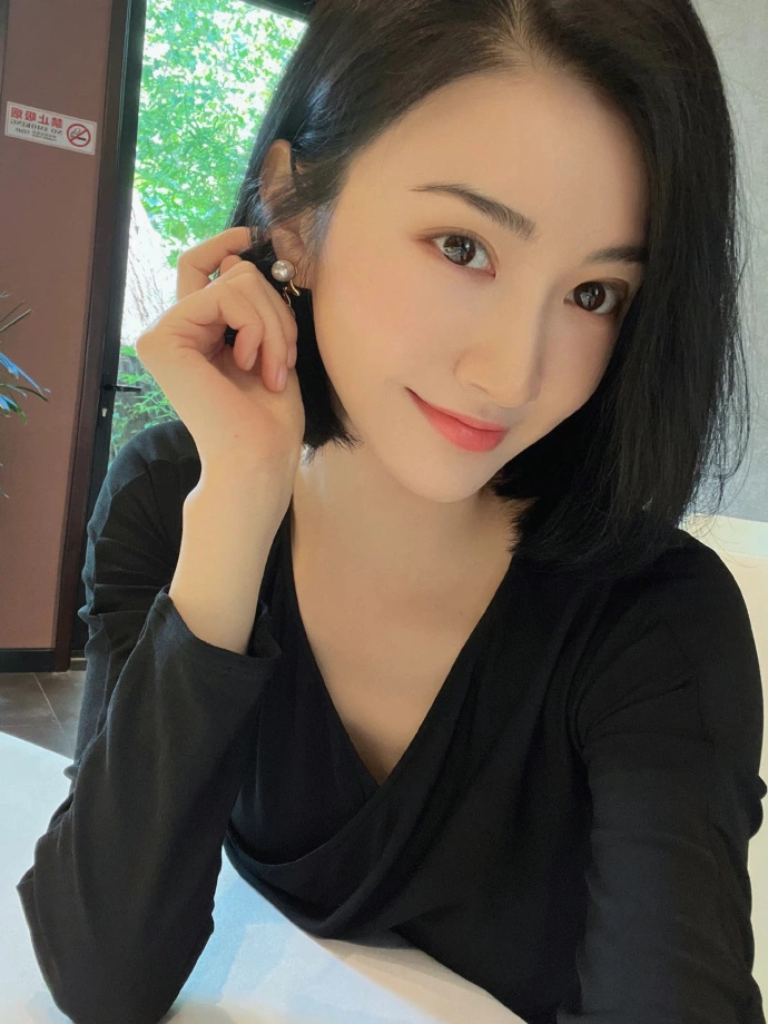On September 16, Jing Tian took a selfie with short hair and white and tender skin. she was wearing a black tight V-neck blouse, showing a beautiful swan neck.