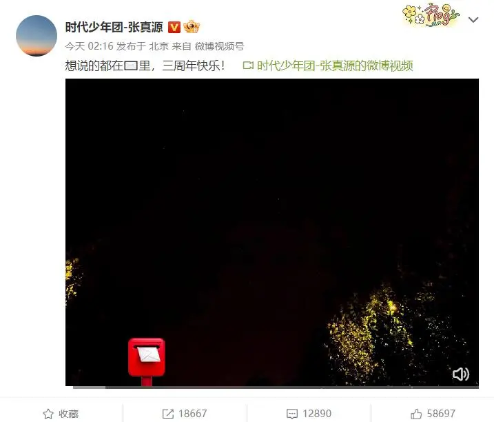 On November 23, the third anniversary of the debut of the time Youth League, the official released a thank-you note, "thanks to the children who are still sincere, still love, still persevere, and still pursue their dreams." Late at night, Zhang Zhenyuan also recorded a voice letter to share his feelings. He said that this year he was more hopeful. After acting in a play, he was 19 years old, and he was more calm and calm, but he was also confused about balancing work and study. Thank fans for their support. I hope I can do more things with no regrets in the future.