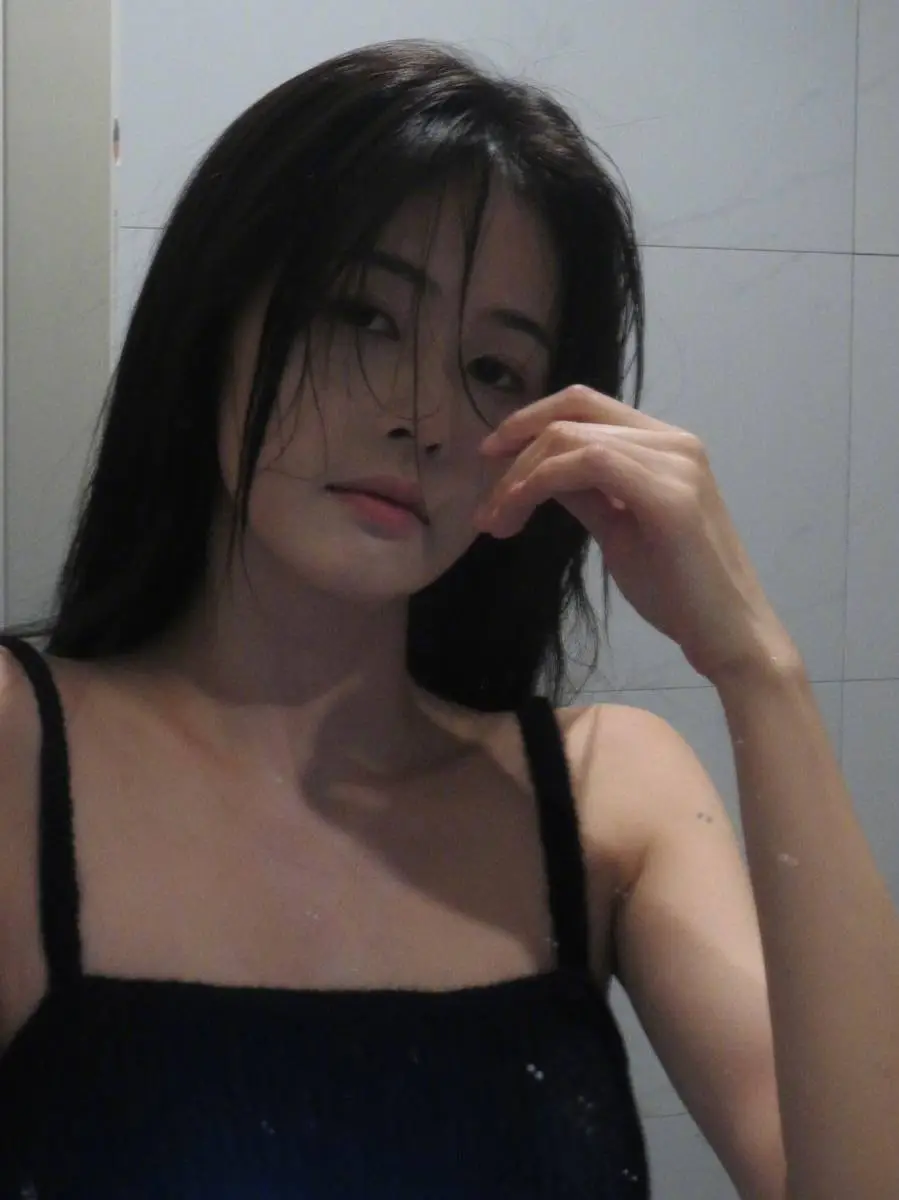 White deer sun bathroom wet hair photo pure desire to wear black sling sexy and casual