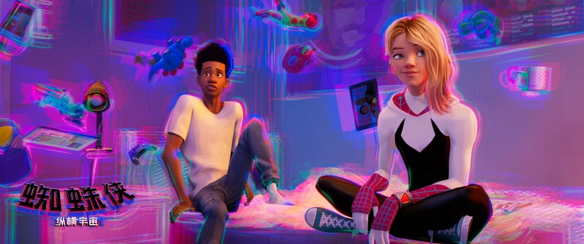 At the same time, Spider-Man: across the Universe showed a 14-minute clip at the film industry conference, showing the warming relationship between Spider-Man Miles and Spider Gwen. Gwen "raided" Miles' room, Miles' mental exposure, so that their distance gradually drew. The two men hung upside down in the skyscraper overlooking the city skyline, making it more romantic. The film was booked by live media as one of the best Super English sequels of the year, and some media said: "the new music is amazing and it's exciting to watch Miles and Gwen swing around the Brooklyn neighborhood."