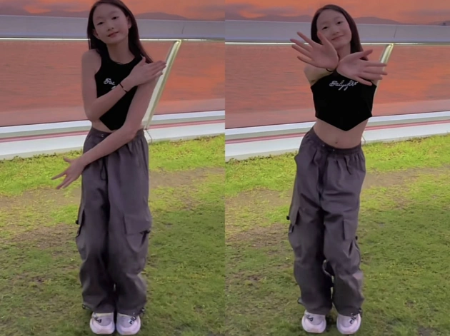 On May 9, Li Xiaopeng posted a video of her daughter dancing, showing 11-year-old Ollie with long hair, navel suit and overalls, slender waist, smiling at the camera and looking online.