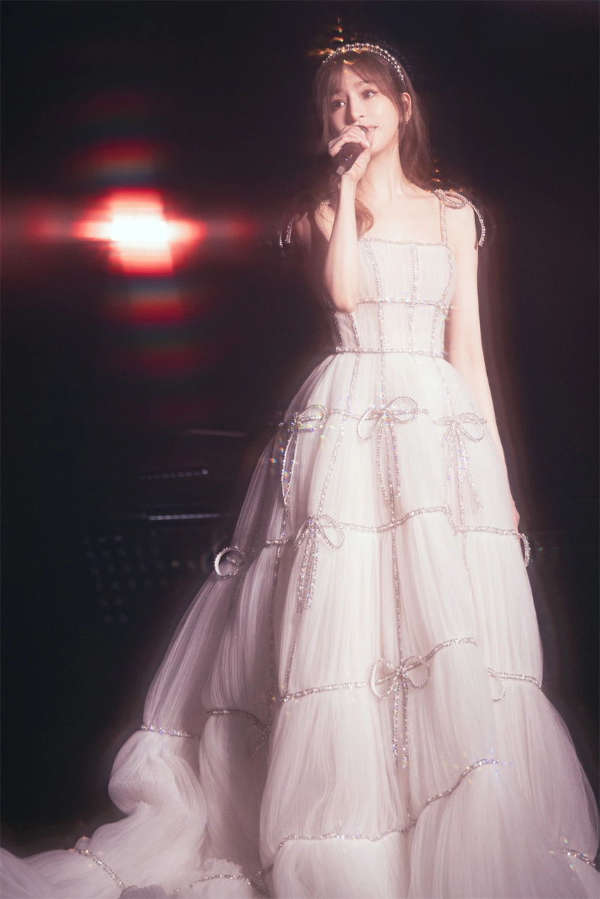 コンサート中段、王心凌は黒スカートにベレー帽を着て再び舞台の中央に戻ったが、これもこのスタイルの世界初着だった。王心凌はベレー帽を合わせて、90年代を復刻して、レトロで前衛的です。童話の世界の人形のようで、可愛くて精巧さを失わない。この部分では、王心凌もこのコンサートの最大のカラー卵の一つである“夢の光点”をもたらし、コンサートはすぐに熱血青春モードに入り、会場のファンは一緒に合唱し、甘いタイムマシンに乗って子供の頃に戻った。コンサート後半、王心凌は銀河フラッシュ姫スカートに着替え、イルカの置景に合わせて、星だらけの半魚姫のように、“初めての愛の人”に1ページの大合唱の名場面を追加した。最後に、王心凌は激しい炎のバラの赤いスカートに三つ編みを合わせて舞台に戻り、熱烈な青春の隣の女の子のイメージを披露し、全粒粉で“水仙”を歌い、ファンに上海駅の最後のサプライズを送った。