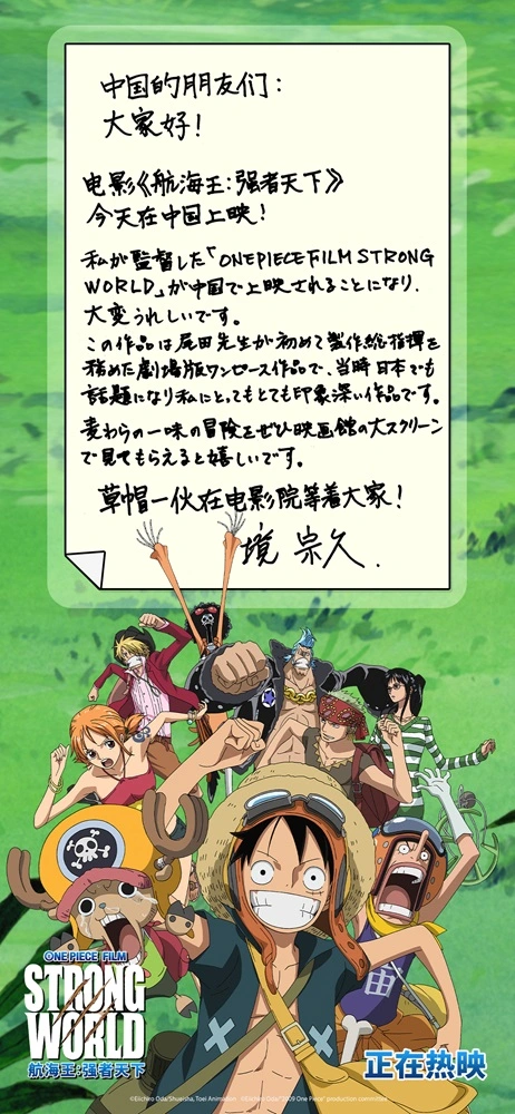 映画“航海王:強者天下”は中国電影集団公司が輸入し、華夏電影配給有限責任公司が配給し、長影集団翻訳制映画製作有限責任公司が翻訳し、今日正式に全国公開された。この夏、映画館に入り、麦わら帽子のギャングと一緒に映画館でカーニバルを楽しむ!