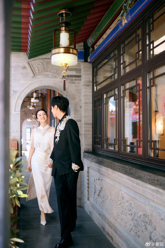 今日、ドンと張偉は2人の結婚式の写真を公開しました。