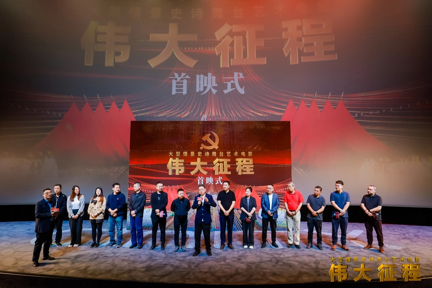 北京映画学院院長、中央新影集団副総経理の朱勤効、池建新、大型情景史詩“偉大な道のり”文芸公演執行監督孟艶、演劇実行監督白皓天、中宣部、文化と観光部、中央放送テレビ総局、及び中国共産党歴史展示館、中央新影集団、華夏映画発行会社などの部門の関連部門が担当している。文芸公演と映画“偉大な道のり”のメインチームのメンバー、俳優代表、メディア記者などがプレミア式に参加した。
