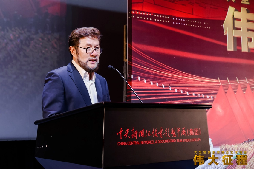 白逸話民は挨拶の中で、“偉大な道のり”はその思想性、芸術性と観賞性を結合し、実景演出から映画スクリーンへの芸術転換を成功させ、映画史上得難い佳作となった。映画の発行元として、華夏映画は映画の発行と普及に心血を注いだ。私たちは観客に壮大な歴史物語を感じてほしいだけでなく、社会各界の人々が文芸佳作を鑑賞する方式を通じて、結党百年の辛い過程と輝かしい成果を肌で感じ、広範な人民の党と国家に対する深い友情を喚起し、より多くの人を中華民族の偉大な復興の道のりに参加させることを望んでいる。