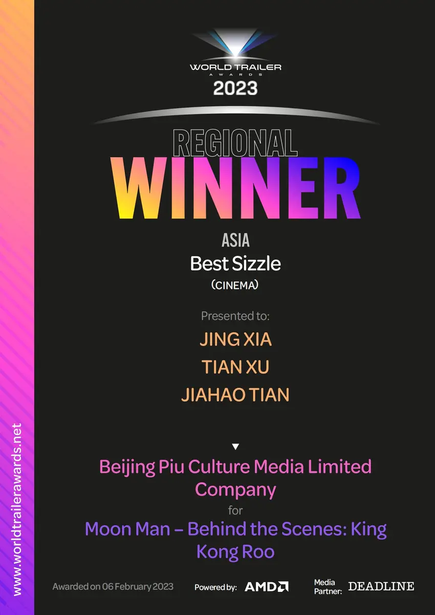 張喫魚監督、沈騰、馬麗を筆頭に主演する開心麻花SFコメディー“独行月”の“一袋宗師金剛鼠”が特集を作り、世界予告編大賞“2023アジア区映画類ベスト特集”を受賞し、この特集を制作したのは国内のベテラン映画EPK制作会社Piu映像工場。