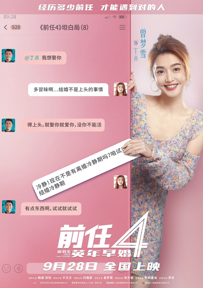 映画“前任4:英年早婚”は9月28日に国慶枠で全国公開される。