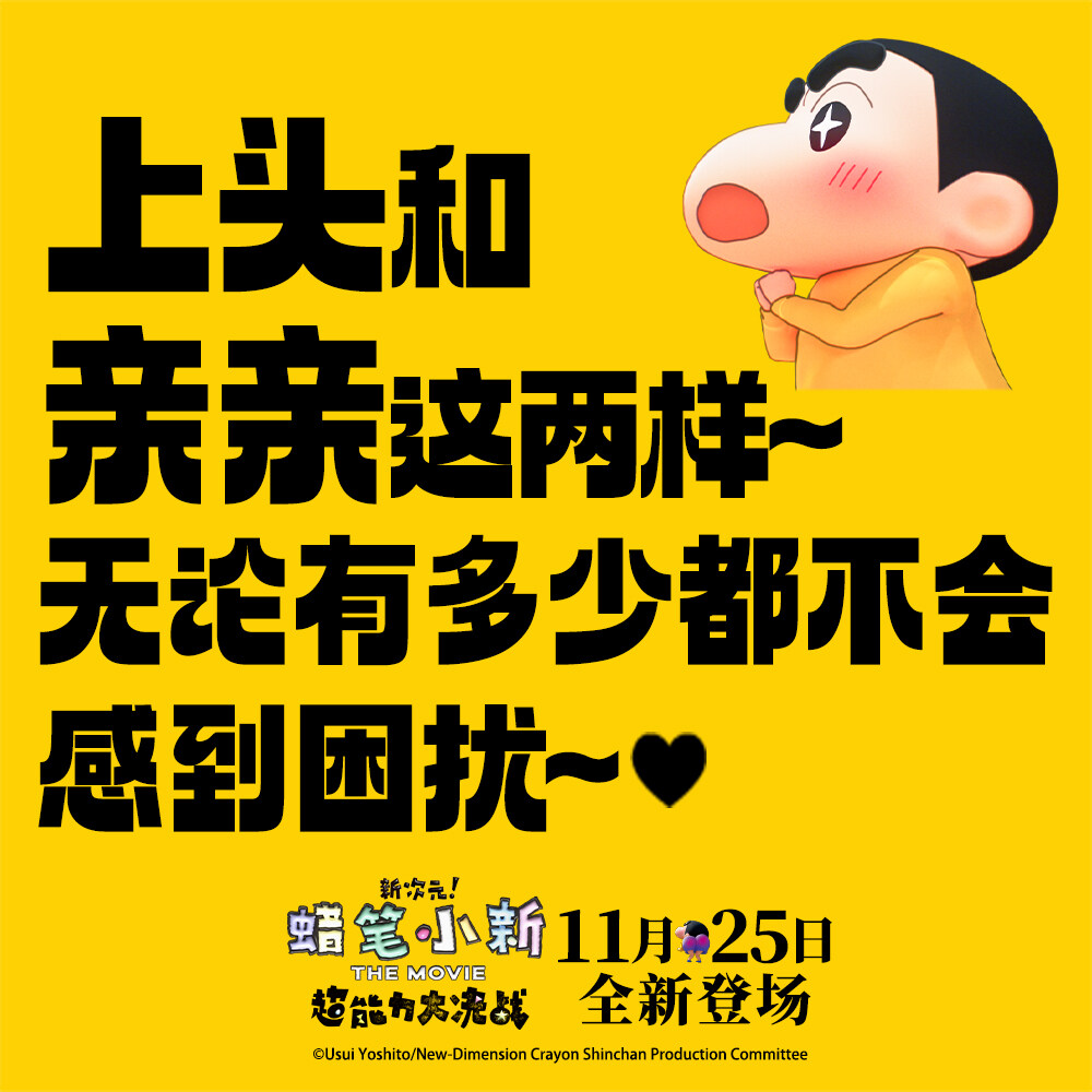 映画枠が11月25日に発表されて以来、全ネットのファンはワクワクし、映画熱はうなぎ登りに上昇している。同映画はこの日、映画プラットフォームがリアルタイムでデータを見たいと思ってランキング1位にランクインし、多くの国内外の商業大作を超えた。なお、映画は以前海外で公開された後、豆弁プラットフォームで8点を超える優秀な成績を収め、正真正銘の評判佳作となっている。クレヨンしんちゃんシリーズが3 DCG技術を使って映画を制作するのは初めて。かわいい5歳の新之助は、2002年にスクリーンで中国の視聴者と初めて会って以来、よく知られているアニメキャラクターとなっている。21年が経ち、新ちゃんはまだ一世代また一世代の観客の成長に独特の無邪気な笑い方で付き添っており、天真爛漫な口調で多くの人生の哲学を教え、多くの温かい時間をもたらしてくれた。今回7年間にわたって制作された“クレヨンしんちゃん:新次元!超能力大決戦“は原作漫画をもとに制作されており、小新のイメージはさらに漫画オリジナル設定の黄色服、紫パンツの服装に回帰しており、映画の内容から制作まで初心に戻る作品となる。ファンにとっては映画だけでなく、子供の頃に戻る旅なので、見逃せません!