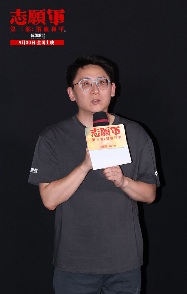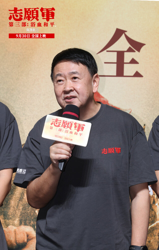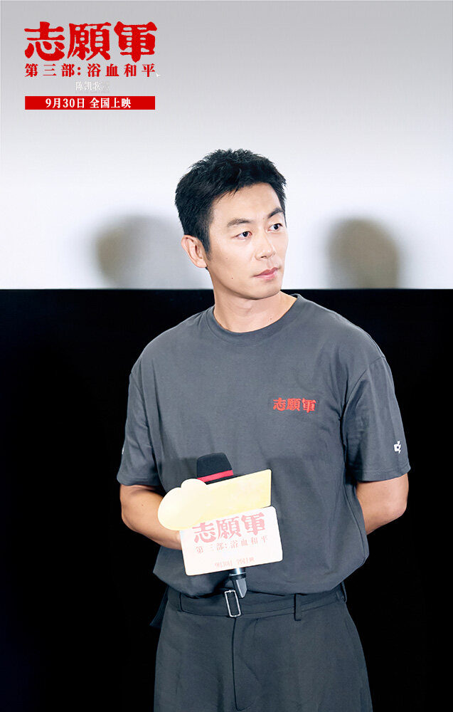 “ボランティアの軍隊:血と平和”のリリースの機会に、前の“ボランティアの軍隊:生存のための戦い”も良いニュースを持ってきた-映画は、第38回中国映画金鶏賞7ノミネートを獲得し、陳Kaigeサイトの監督は、これに応答した:“金鶏賞組織委員会に感謝し、私たちの聴衆の大多数にもっと感謝します。抗米援朝と新中国の成长は密接につながっていて、私は感谢するしかない。”そして、今後の新作については、陳Kaigeは準備から撮影まで5年までの“ボランティア”シリーズの生産サイクルを述べ、今では3番目は全国の観客と会う予定であり、陳Kaige監督の心は特に感情的である:“時間は本当に速く、この時点まで貴重な友情を感じることができます、最後には3年間観客に同行した映画ですか?それとも、観客はボランティアのために3年間映画に同行したのでしょうか。もうはっきり言えない。70年以上経った今でも、私たちが今日の生活のために命を捧げ、勇敢な犠牲を払った戦士たちを覚えていることに感動し、観客の皆様に感謝しています”シリーズ最後の作品である“ボランティア:血の中で平和”は、映画全体を通して様々な写真が登場しますが、監督は“私たちは子供の頃、テーブルの高さの前に立ってその写真を見て、すべてがその瞬間に固定されているように見えた経験があるでしょう。写真は過去とのつながりであり、勇敢な志願兵とのつながりでもある。最后にこれら犠牲者の写真は、李家の台に并んで置かれている。映画全体を见返すことだ”と述べた。『志願兵』三部作を振り返ると、監督は常に“人々の物語は本当に価値がある”と強調してきたので、映画は無名の志願兵のために多くのスペースを残し、平和を祝う群衆ポスターが印象的で、プロデューサー、総プロデューサーの陳紅は説明した。“抗米援朝戦争は多くの有名な英雄が登場しましたが、より多くの普通の、若い兵士の何千人もが、彼らは全国から来て、故郷の土の味と韓国の戦場への故郷の思いを持っています。私たちは、このポスターに描かれた兵士たちの平和と勝利の笑いに感染しました。それがボランティアの本当の姿であり、ボランティア精神の温度だと思います。