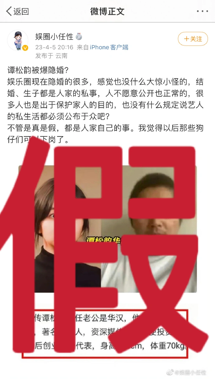 譚松韻スタジオはデマ隠婚の噂を発表した:現在未婚で独身 全文约11字, 阅读需要1分钟 4月6日、譚松韻スタジオは独身で独身であることを宣言した。 4月6日、譚松韻スタジオは独身で独身であることを宣言した。 関連人物