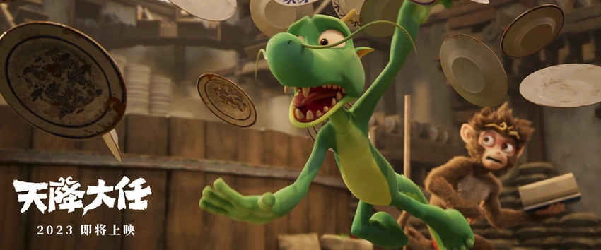 由昔日贴吧清明梦大神宇宙之铁担任编剧并执导的动画电影《天降大任》发布了“兄弟齐心”版预告。片中,一只穿三角裤的猴子与一只有些拉垮的小龙搭档,在充满奇幻色彩的世界里上天入地,大显神通。