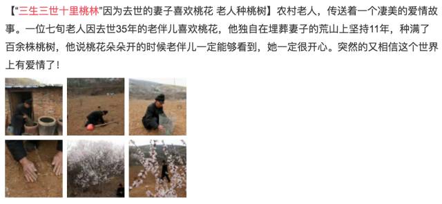 相信不管单身狗还是情侣都会为老人竖个大拇哥儿吧~有一个像霍建华那样默不作声的支持是幸福,有一个像李晨那样安全感爆棚的依靠是幸福,有一个像邓超那样幽默逗趣的陪伴是幸福,那么这位老人深爱的老伴儿,在去往极乐世界后用一片她最爱的桃林来缅怀他们之间质朴的爱,有一个这样爱她的丈夫,夫复何求。但是对于秀恩爱,他...