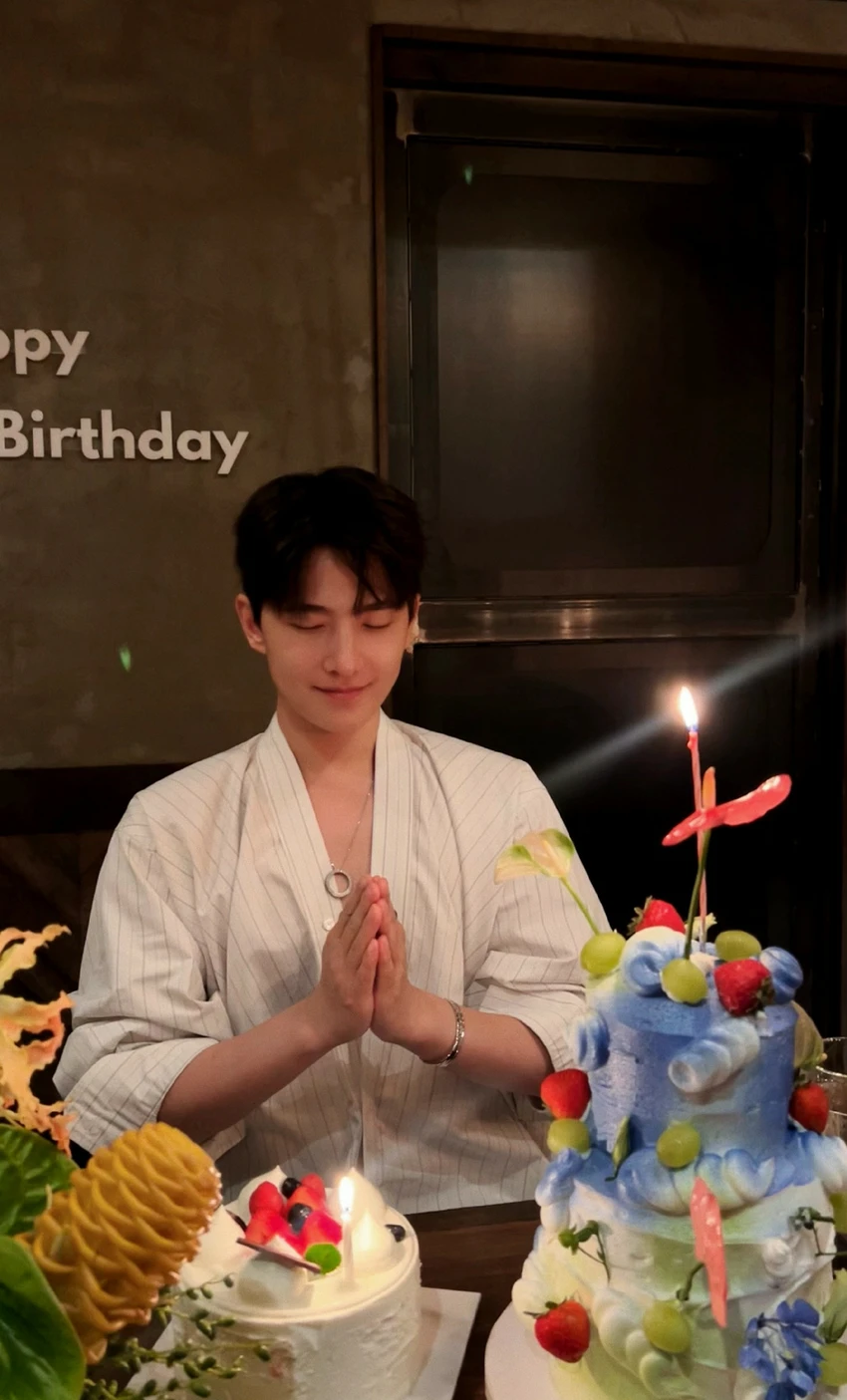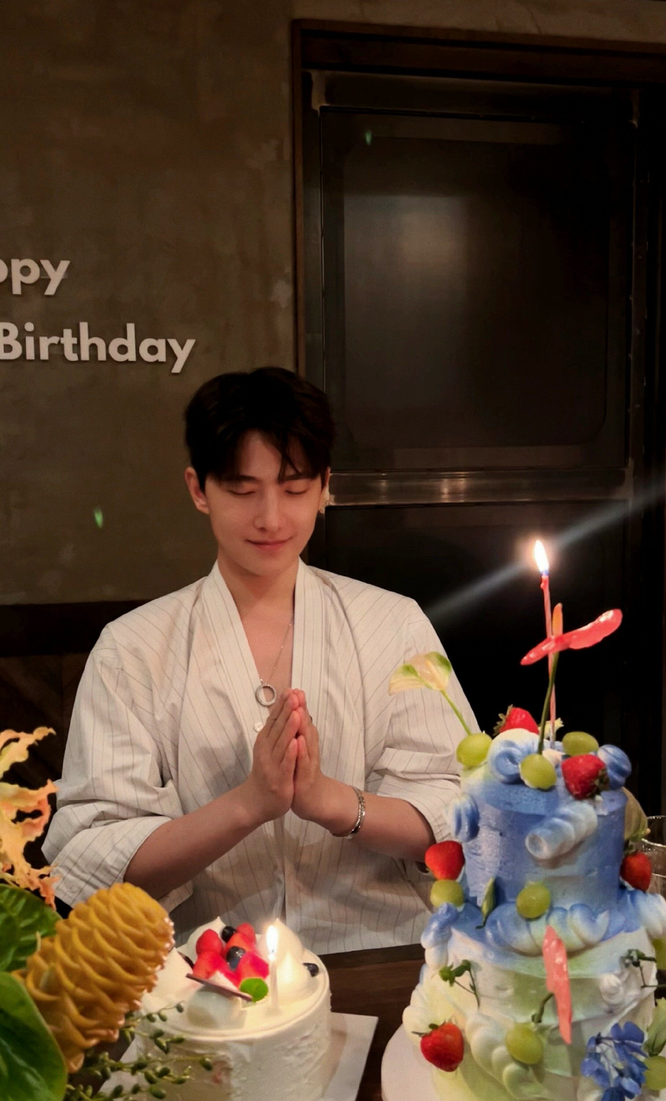 细雨初歇,绿意氤氲。杨洋身着一袭紫色外套,穿梭于热带雨林之间。藤蔓缠绕,树影婆娑,他踏着湿润的泥土仰头探寻林间漏下的天光,刹那间仿佛与自然共生。另一组图中,烛光摇曳,他俯身吹动蛋糕上的蜡烛,眼角漾开清澈笑意——两种鲜活,一样生动。