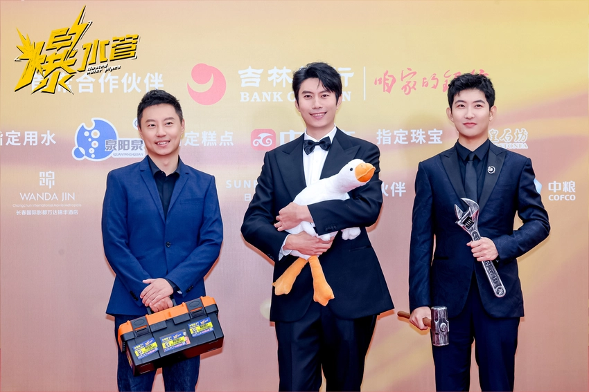 犯罪喜剧《爆水管》亮相长春电影节,导演周涤啡、艾伦、闫佩伦红毯秒变“修水管团队”