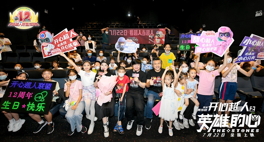 影片将于7月22日正式全国上映,届时必将为观众带来超多快乐和感动。此次举办的开心超人联盟十二周年生日会现场可谓高潮迭起。