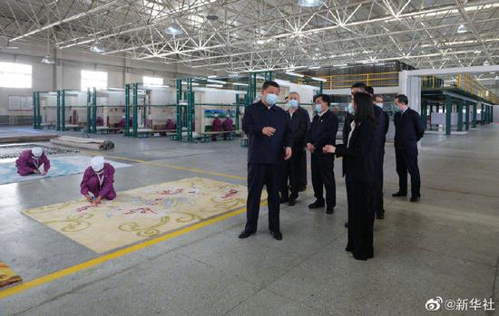 习近平:发展更多特色产业,靠创新实现更好发展7日下午,习近平总书记来到青海圣源地毯集团有限公司,走进生产车间、设计部门察看产品生产、设计情况。习近平希望青海发展更多这样的特色产业,靠创新实现更好发展。