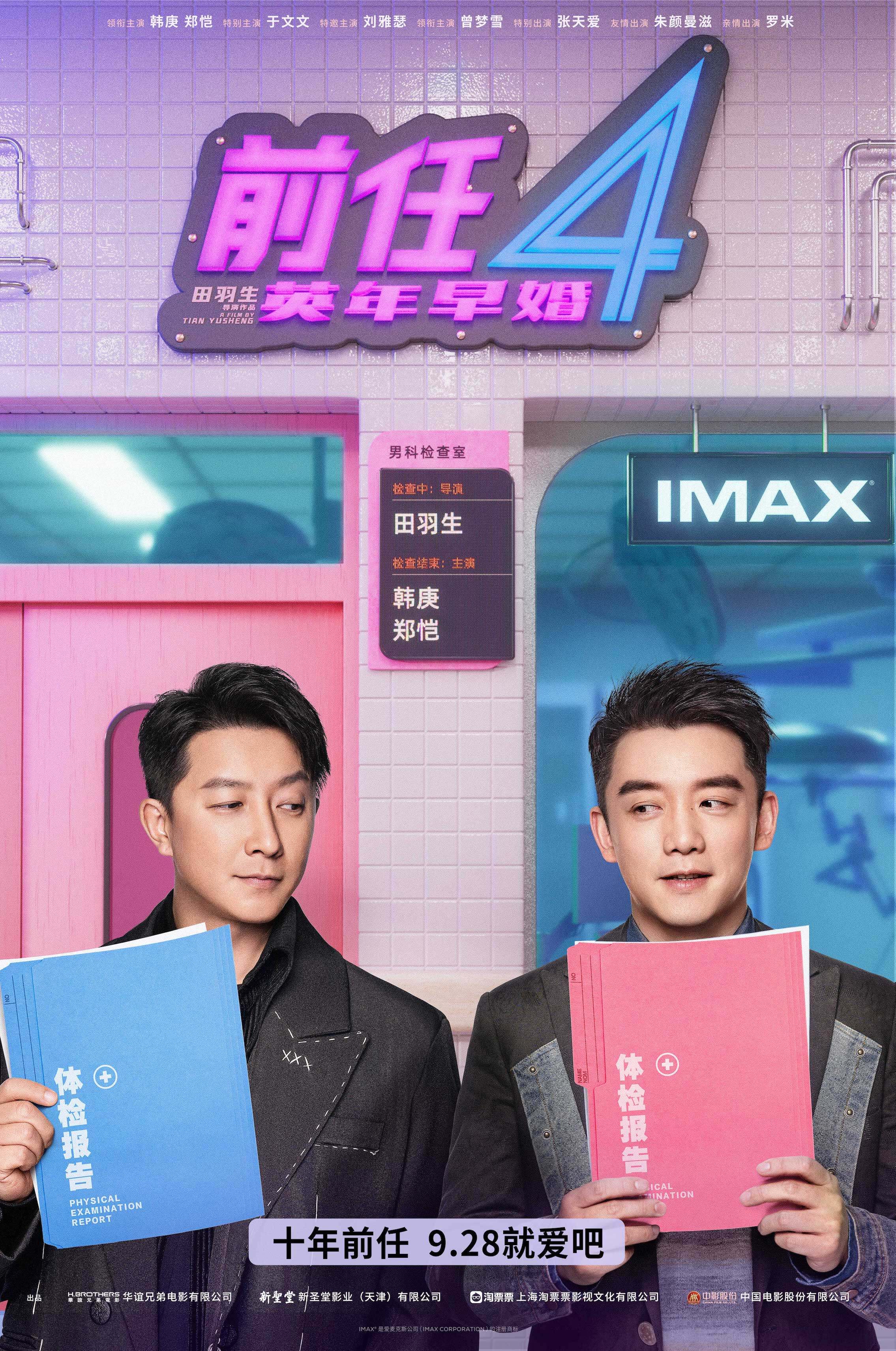 今日,由田羽生执导,韩庚、郑恺领衔主演,将于9月28日国庆档全国上映的电影《前任4:英年早婚》曝光IMAX、CINITY、CGS中国巨幕、杜比全景声(Dolby Atmos)、DTS:X临境音、WANOS全景声六款制式海报,“前任”主角团韩庚、郑恺、于文文、刘雅瑟、曾梦雪、张天爱、朱颜曼滋、罗米生动演绎现代爱情群像,尽显“前任”系列爱情喜剧风格。同时,电影《前任4》正式公布了首映礼与路演计划。宣布将于9月25日在北京举办“十年前任 9.28就爱吧”主题首映礼,并将于9月27日起正式开启“如果是见你,我们用跑的”全国路演。在福州、上海、成都、郑州、武汉等城市,和“前任”主创们来一场久别重逢吧!电影将于9月28日国庆档全国上映。
