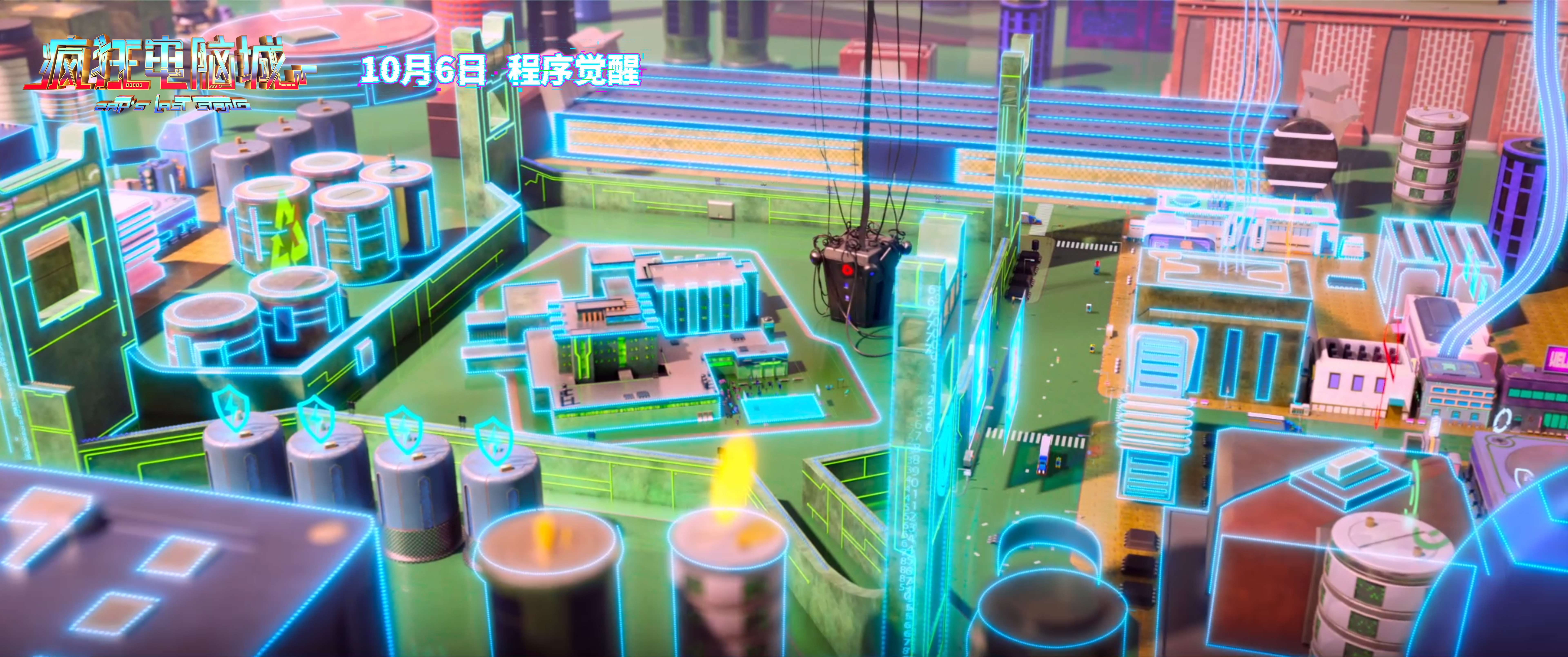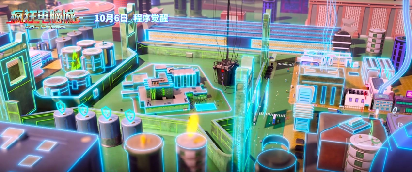 电影《疯狂电脑城》中的虚构城市“电路城”,既是电子信息的纽带,又是算法的国度,更是数码的乌托邦。这里的建筑,通通由点、线、面构建,如同梦中城堡,又如同孩童积木堆叠而成的城市。影片以绚烂的光影和生动的画面,展现电路城的缤纷精彩;更以精心设计的像素化粒子特效,让观众仿佛置身于一个充满活力与创意的科幻之都。影片呈现的不只是一场视觉盛宴,发生在这里的故事更是充满了奇思妙想、童趣与童心,孩子们能够跟随故事的发展追寻梦想,踏上冒险征程。