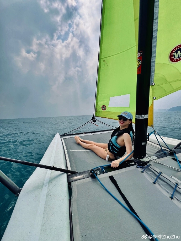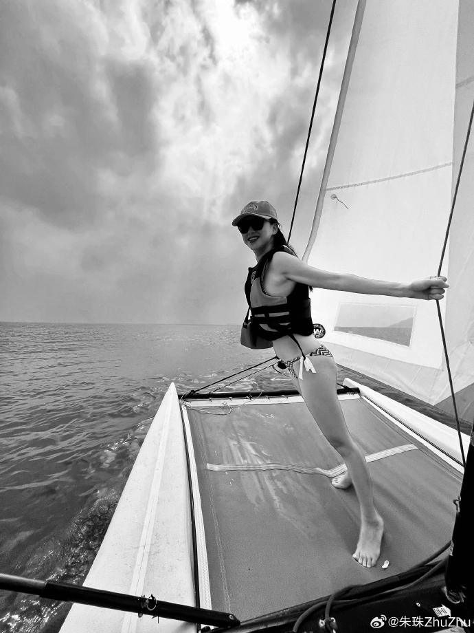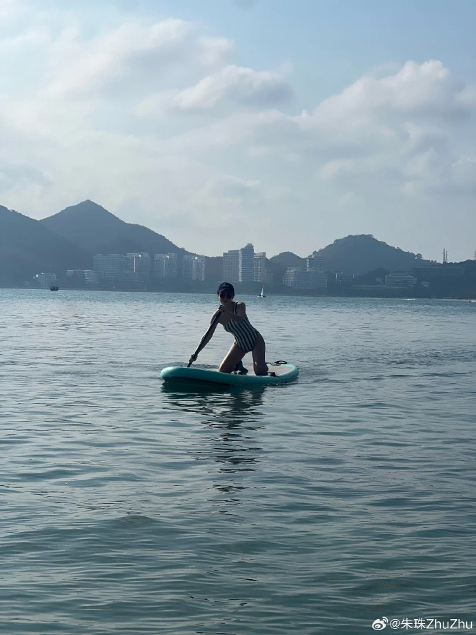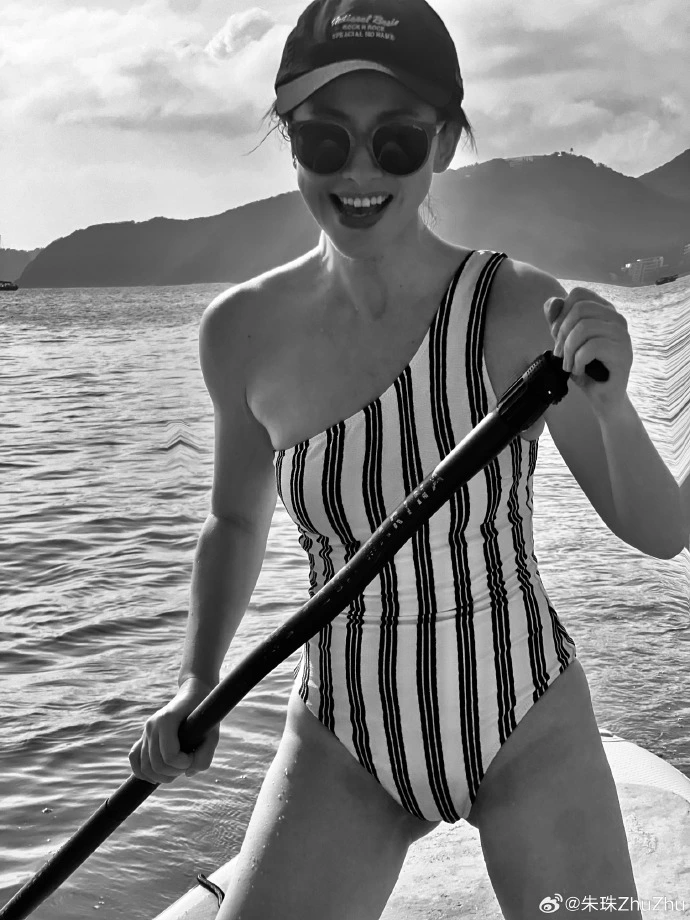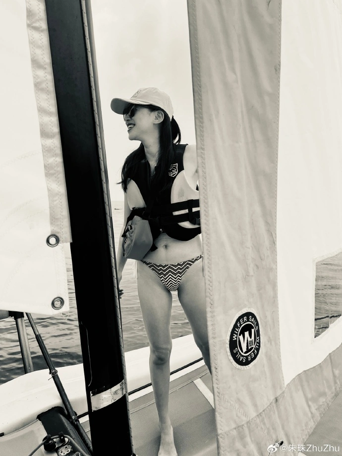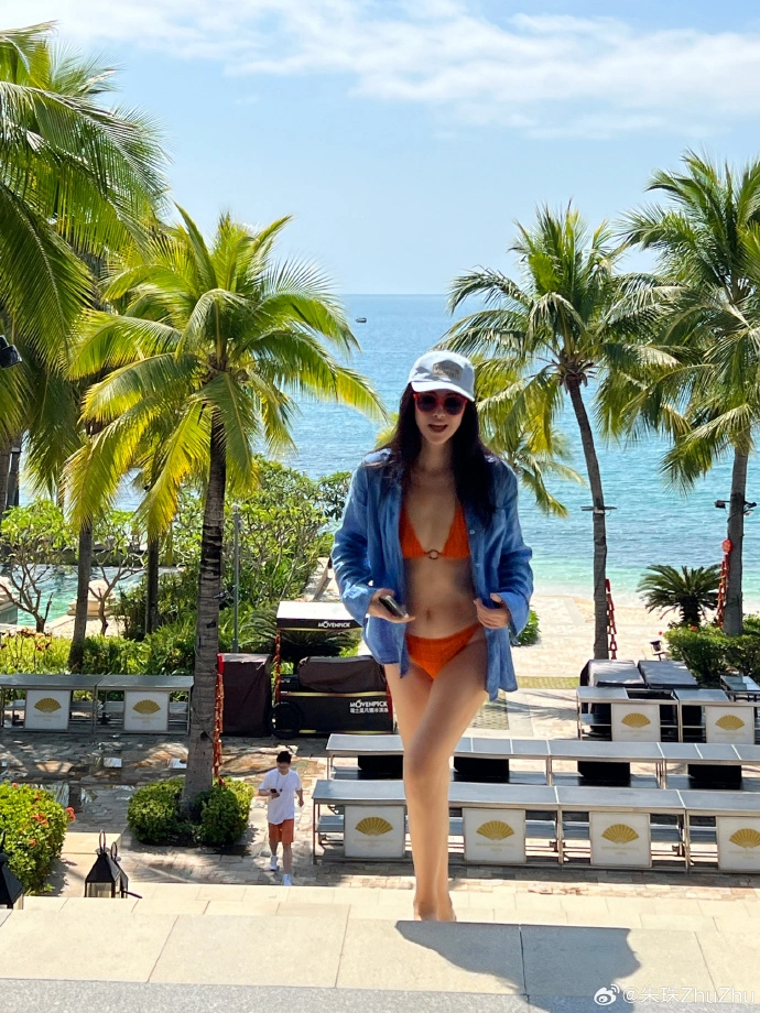 朱珠分享海岛泳装随拍 笑容明媚身材好优越