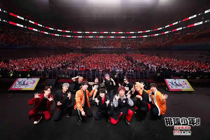 电影《排球少年!!垃圾场决战》6月10日在上海东方体育中心举办了影片首映粉丝节,现场高燃气氛让电影终于来袭有了实感。丰富的活动流程与超前观影活动让粉丝充满惊喜,声优与SPYAIR的出场一度将现场气氛推向高潮。这是一场属于“排人”的专属狂欢,上万人一共参与的排球少年ONLY。6月15日,电影《排球少年!!垃圾场决战》全国上映,这个夏天,和“小排球一起飞”!