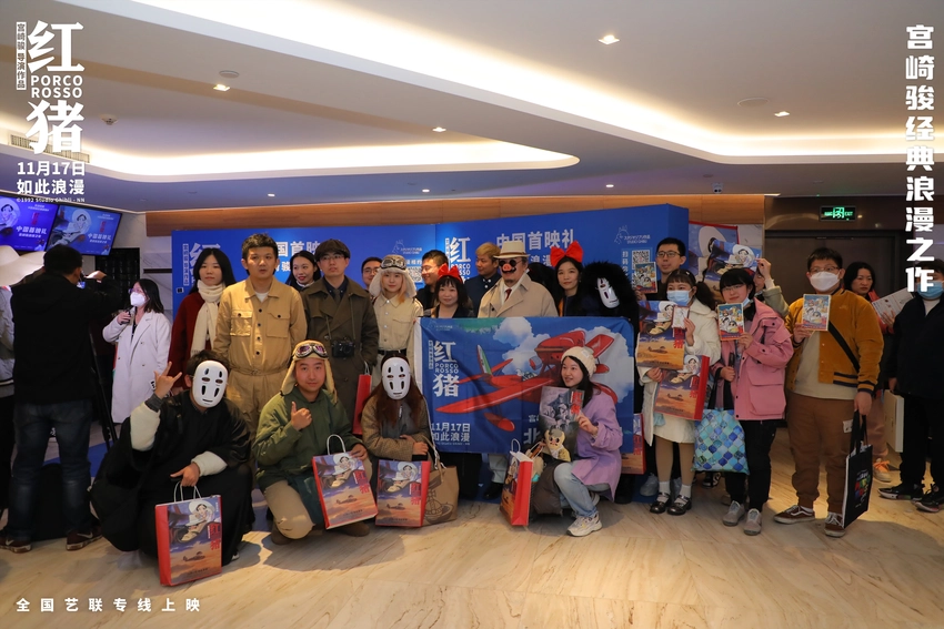 久之网电影北京讯 由日本动画电影大师宫崎骏执导的经典动画力作《红猪》于11月10日隆重举行“宫崎骏浪漫之夜”中国首映礼,著名主持人鲁豫、影片中文配音导演皇贞季、配音演员山新与众多影迷现场欢聚,宫崎骏粉丝现场cos波鲁克、菲儿、吉娜等片中经典角色点燃首映气氛。映后观众好评不断,感叹“宫崎骏依然能够唤醒我们心中最向往的美好”。影片讲述了主角波鲁克为了不沦为战争机器,甘愿经受诅咒成为一只猪,并以红猪的身份打击空中劫匪、保护喜欢的人的故事。豆瓣评分8.6,其充满艺术性的画面风格、大师级的配乐都带给观众极致的观影体验。该片预售日前已经全面开启,将于11月17日登陆全国艺联专线,一场关于勇气、热爱与自由的浪漫冒险即将在这个初冬席卷内地大银幕。