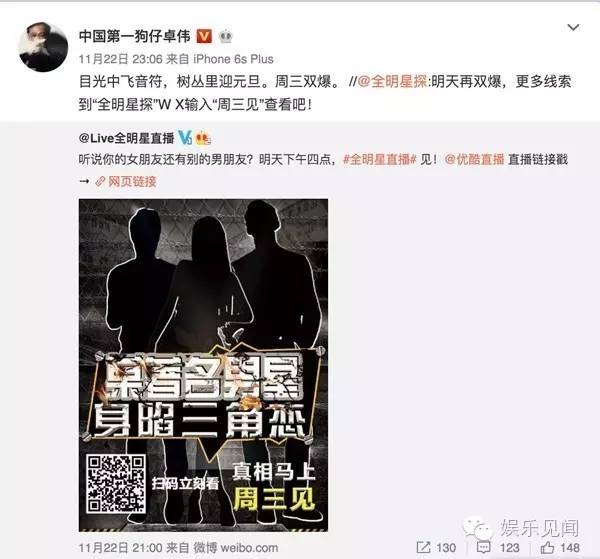 从爆料的图上来看,卓伟大大的实在是没抓个正着,连拥抱都没看到,更何况拍屁股~暂且先把这一波的战斗放在一边,我们继续看看接下来两位各不示弱的表现,赵五儿在“林丹出轨事件”还在余热当中,继续掀起大浪,于11月20日再次爆料,配上一张模糊不清的图,并给出提示:武打明星。在双方都否认的前提下,卓伟愈战愈勇,把“刘...