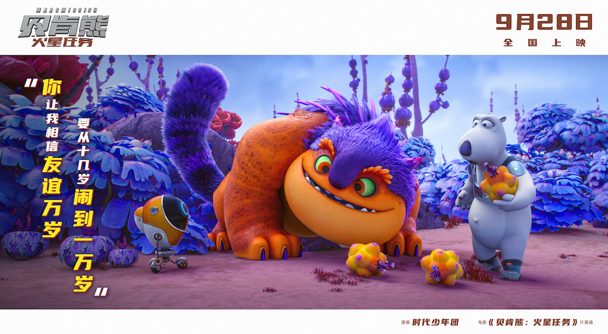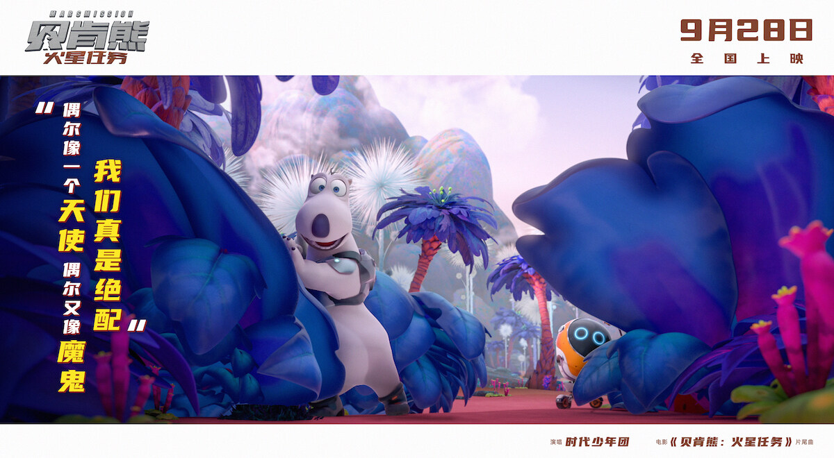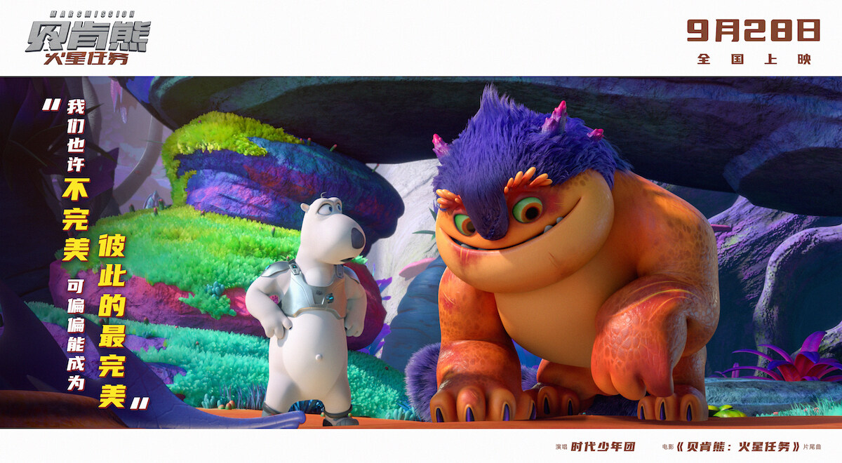 将于9月28日国庆档上映的喜剧动画电影《贝肯熊:火星任务》今日曝光“宇宙最强友情”版终极海报,同时发布由时代少年团演唱的片尾曲《绝配》剧情抢先版MV。