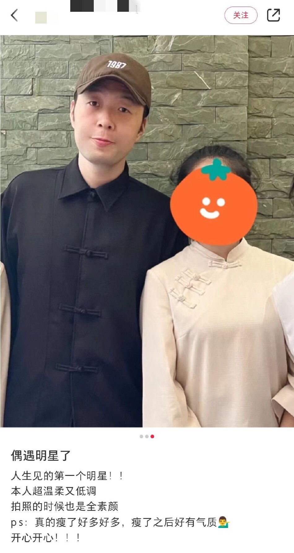杜海涛变瘦后与路人合照曝光 减肥成功气质变化明显 全文约85字, 阅读需要1分钟 近日,杜海涛与好友外出被网友偶遇。照片中,他身穿一件黑色的衬衫,戴着一顶褐色的鸭舌帽十分低调,跟路人微笑合影亲和力十足。据悉,此前杜海涛被曝减重30斤,减肥成功后,五官显得更加立体,气质变化明显。 近日,杜海涛与好友外出被网友偶遇。照片中,他身穿一件黑色的衬衫,戴着一顶褐色的鸭舌帽十分低调,跟路人微笑合影亲和力十足。据悉,此前杜海涛被曝减重30斤,减肥成功后,五官显得更加立体,气质变化明显。 相关人物