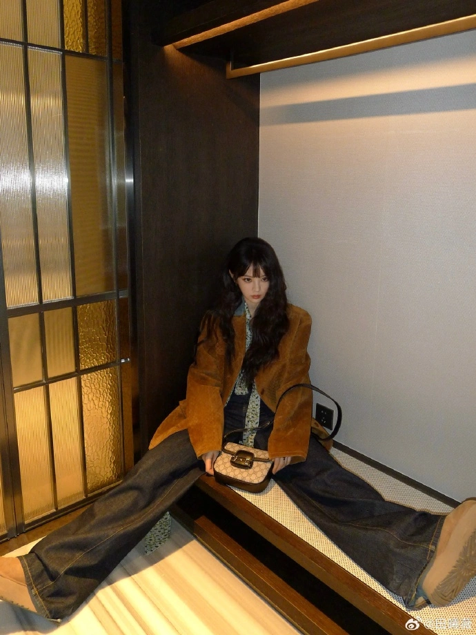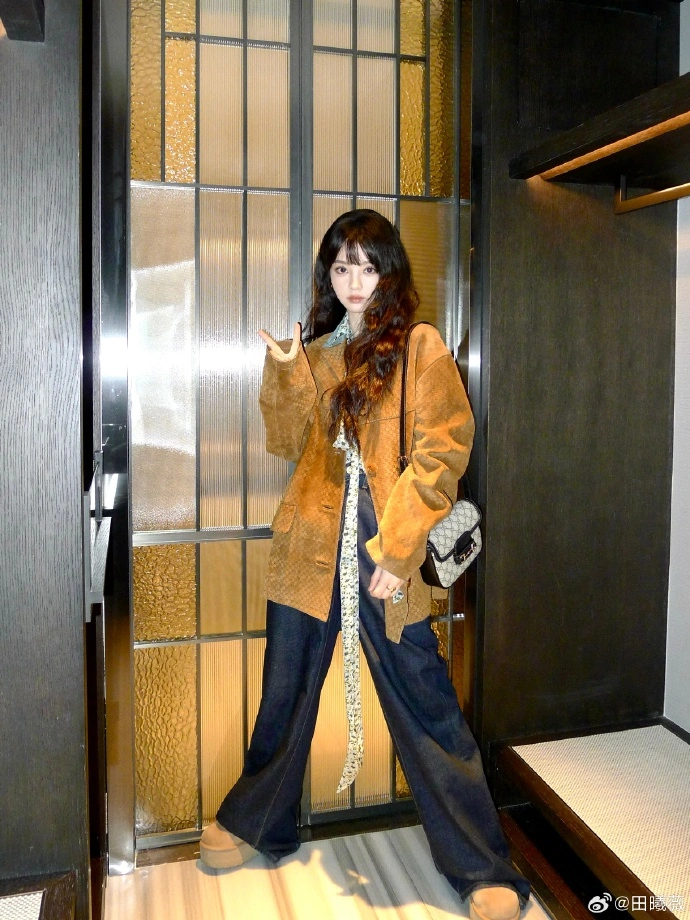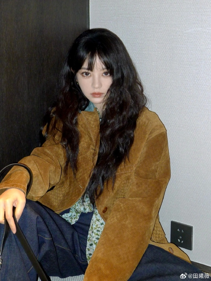 田曦薇晒羊毛卷造型美照 穿复古夹克少年感十足