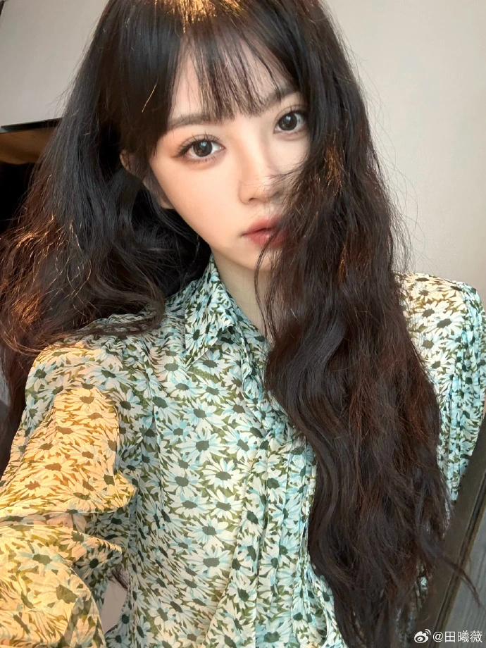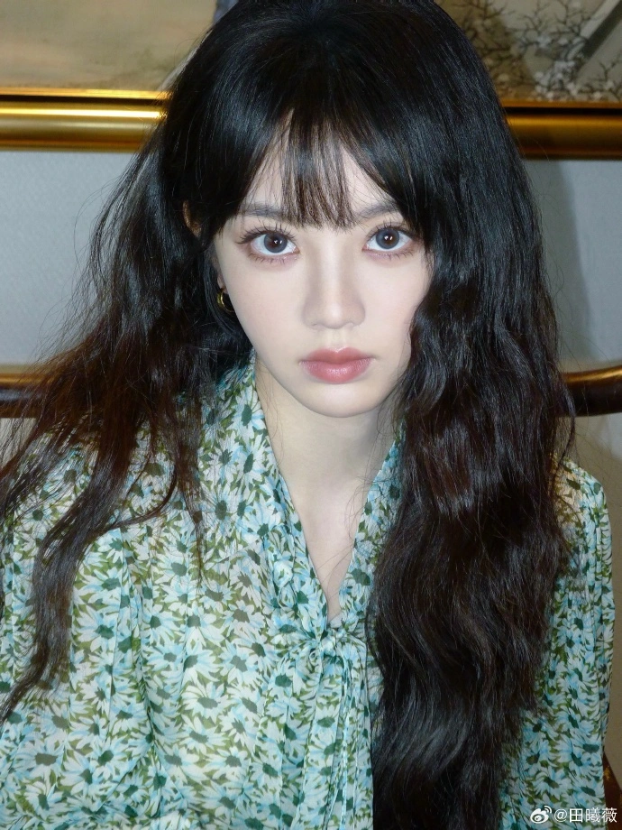 近日,田曦薇晒出一组羊毛卷造型的美照。