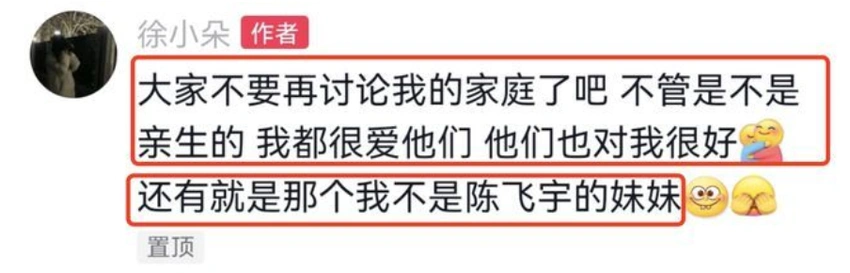 冯小刚养女回怼不是亲生评论 称自己不是陈飞宇妹妹 全文约92字, 阅读需要1分钟 6月18日,冯小刚养女徐朵晒与冯小刚合照并配文:“老爸节快乐!”有网友在评论区留言称其不是亲生的,她回应道:“你管得好宽哦!”随后,徐朵再次强调:“大家不要再讨论我的家庭了吧,不管是不是亲... 6月18日,冯小刚养女徐朵晒与冯小刚合照并配文:“老爸节快乐!”有网友在评论区留言称其不是亲生的,她回应道:“你管得好宽哦!”随后,徐朵再次强调:“大家不要再讨论我的家庭了吧,不管是不是亲生的,我都很爱他们,他们也对我很好。” 相关人物