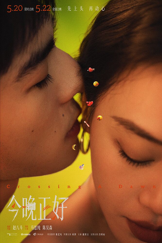 都市爱情电影《今晚正好》由陌陌影业有限公司、北京大麦娱乐文化有限公司、中国电影产业集团股份有限公司出品,北京透明杂质文化传媒有限公司、海南可能制造影业有限公司、鑫毓(北京)文化有限公司、海宁壹起演艺经纪有限公司联合出品。赵八斗编剧、执导,马思纯、陈昊森领衔主演,张艺凡特别邀请,宋洋特邀出演,温茉言主演,吕星辰友情出演,将于5月22日全国公映,5月20日全国限时点映。