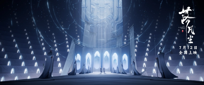 《落凡尘》不仅展现了飘逸灵动的人物和恢弘磅礴的场景,更以缥缈的锦缎质感和无处不在的细节展现出影片独特的美学风格。垂自天际的天幕犹如缎带飘落,金玉锦绣中看尽传统工艺之精巧;烟火人间的亭台楼阁雕栏玉砌,飞檐斗拱间尽显传统建筑之灵韵。除此以外,氤氲缥缈的祥云、神秘奥妙的符箓等无一不展现出本片独特的新中式之美。据悉,本片有超过50个顶级制作团队、超过2000名动画艺术家历时5年共同完成,影片中还有哪些惊喜,需要观众届时去电影院一探究竟!
