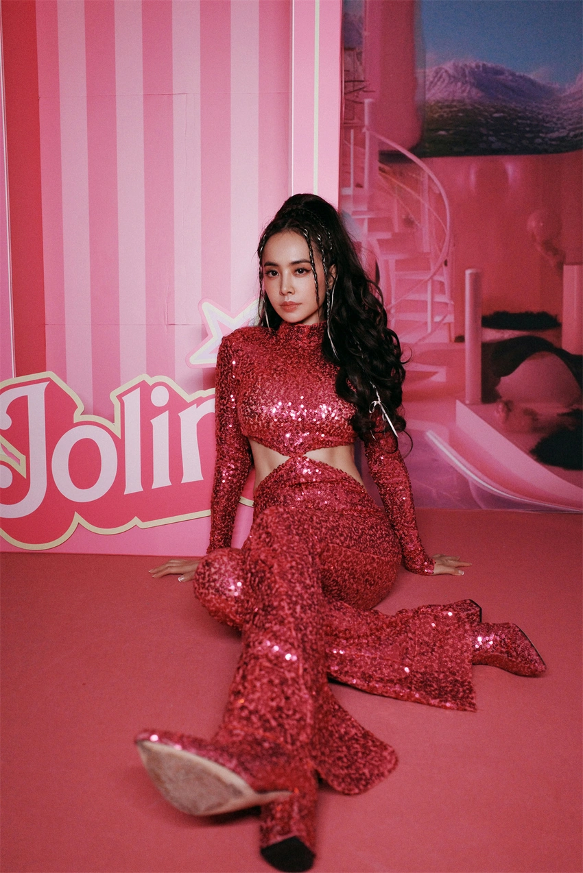 演出开启,蔡依林身穿两套华伦天奴顶级服饰璀璨亮相,好身材与服装完美匹配。糖果绿羽毛装傍身,脚踩亮片高筒靴,与蜜色皮肤融合的恰到好处,焕发新生魅力;当《舞娘》前奏响起,全员芭比粉色服装的伴舞整齐出现在互动式街区,热辣劲舞,蔡依林换上一身玫色露腰连体裤,大秀曼妙腰线,身披同色系披风降临舞台中央,气场爆棚。与演唱的歌曲风格相得益彰,为整场跨年夜演出增添了一份独一无二的jolin气息。