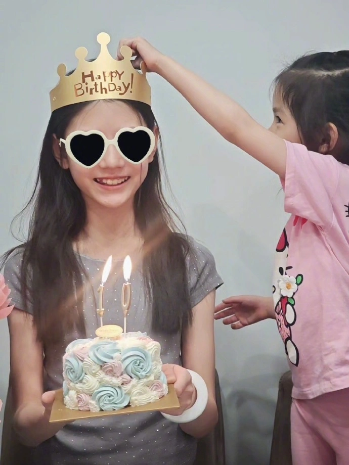 张梓琳晒照为10岁大女儿庆生 胖妹双手捧蛋糕笑容灿烂