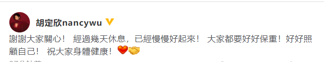 胡定欣确诊新冠后发文:经过休息已经慢慢好起来
