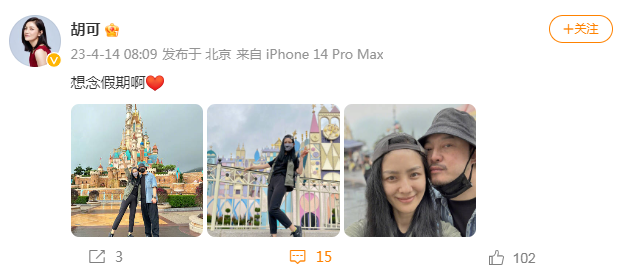 胡可晒迪士尼游玩照 与沙溢贴脸合影恩爱满满 全文约34字, 阅读需要1分钟 4月14日,胡可晒出与沙溢在迪士尼乐园游玩的照片,他们在城堡前贴脸合影,恩爱满满。 4月14日,胡可晒出与沙溢在迪士尼乐园游玩的照片,他们在城堡前贴脸合影,恩爱满满。 相关人物