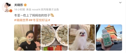 关晓彤冬至的顶配幸福:妈妈的饺子+小狗的陪伴