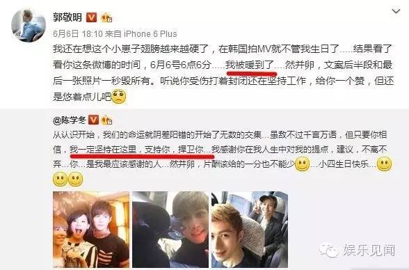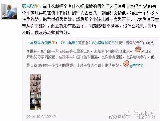 早在2014年陈学冬曾因在某档节目中说话直接引来抱怨和批判,当他站出来道歉之后,替陈学冬感到委屈的郭敬明就跳了出来维护陈学冬,在微博上发文: