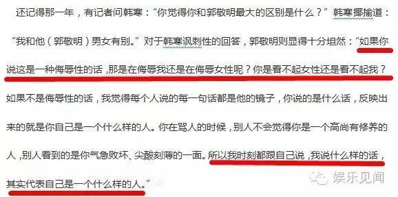 即便是面对揶揄和嘲讽,他的态度都是周正的,可还记得他是如何回应韩寒的揶揄:我和他(郭敬明)男女有别的吗?
