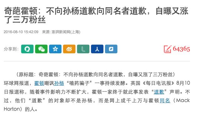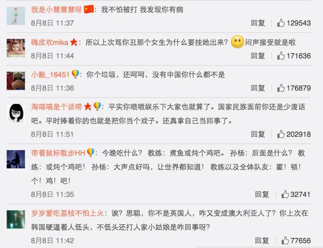 如果一个人连face都不要了!那也真是无敌!悄悄告诉你霍顿,树还要皮呢!不过看到是“霍顿一家”就此事发表的“道歉”,我也就明白了,教育对于一个国家来说多么的重要。孙杨虽然在400米自由泳比赛中以0.13秒之差没有夺得金牌,但在大家眼里他依旧很棒,本来就此事,papi酱的言论已经遭到吃瓜群众的小批评!但为了维护自己的同胞,这份心情倒是还能够理解,毕竟我们都是有五颜六色情感的人,世界并不是只有黑白灰!