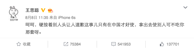 这个就给本身就没有得到霍顿道歉的网友们撺了一把好火,然后,王思聪的“后院”就起火了~“老婆”们都不!见!惹!这嘘声一片估计公关都不好做喽~