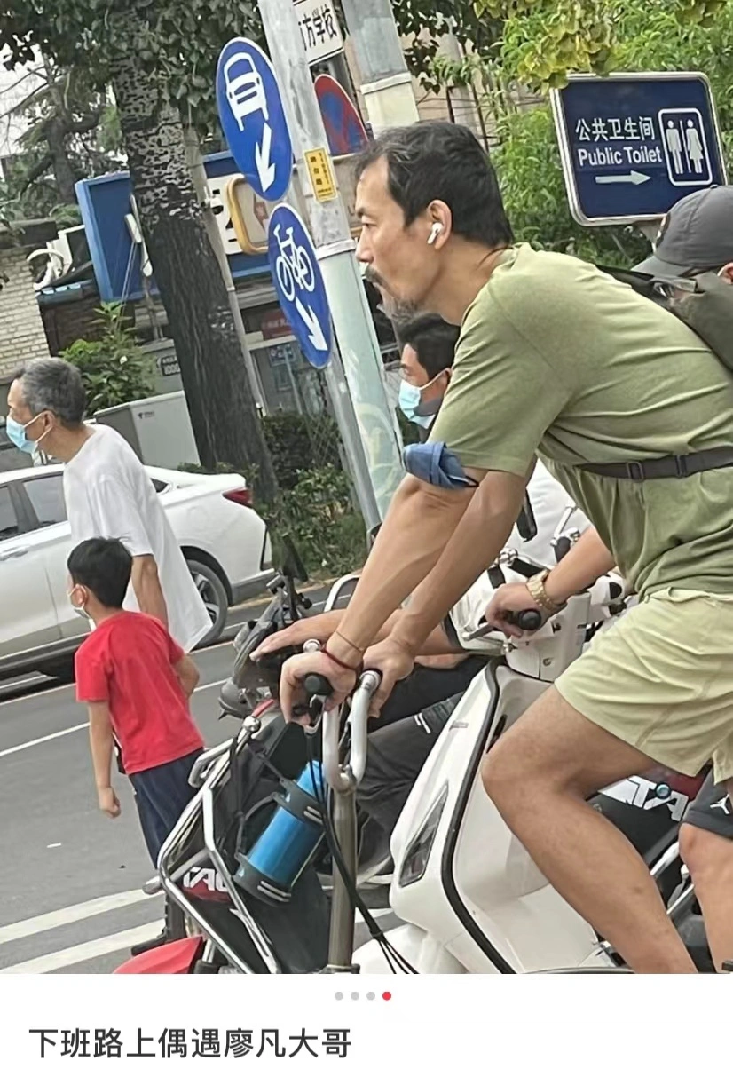 廖凡骑自行车出街被偶遇 低调穿搭留着胡子很是随性 全文约52字, 阅读需要1分钟 近日,有网友晒出偶遇廖凡的照片。照片中,廖凡骑着自行车出街,留着胡子,穿着浅色背心和大裤衩出镜,脚蹬布鞋,打扮朴素随意。 近日,有网友晒出偶遇廖凡的照片。照片中,廖凡骑着自行车出街,留着胡子,穿着浅色背心和大裤衩出镜,脚蹬布鞋,打扮朴素随意。 相关人物
