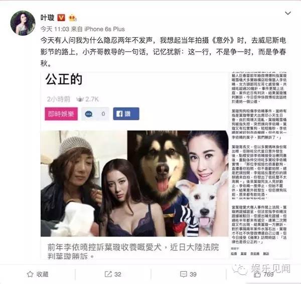 不过从“下降头”开始,叶璇真的就忙得停不下来惹~一场持续两年之久的“狗官司”,令其形象有点折损,但近日,这场“狗官司”终于是落下帷幕,并以胜诉告终,这一局算是扳回来不少好形象。